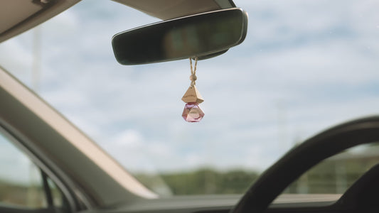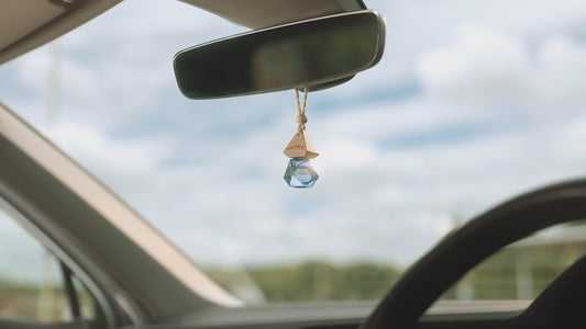 - Stijlvolle diffusers: De handgemaakte glazen flesjes met houten dop zijn een sieraad voor je achteruitkijkspiegel.