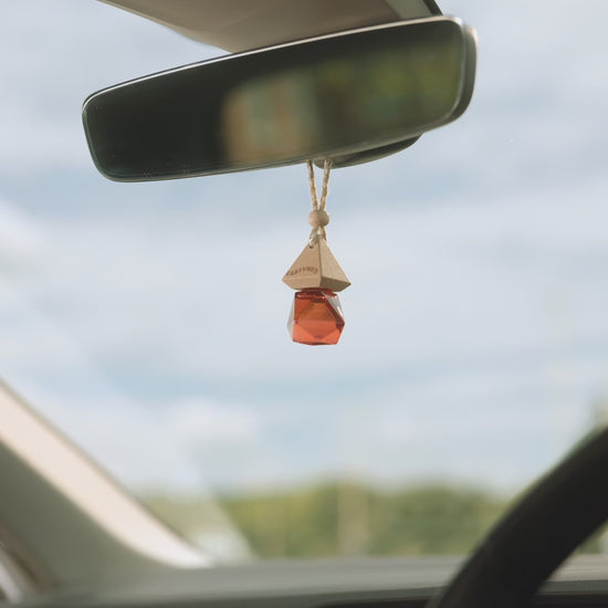 Carfume Savage - Luxury Hanging. De glazen flessen met op maat gemaakte, uitgesneden houten bovenkant zien er elegant uit en voegen een stijlvolle toets toe aan jouw auto en geven een langdurige geur.