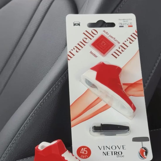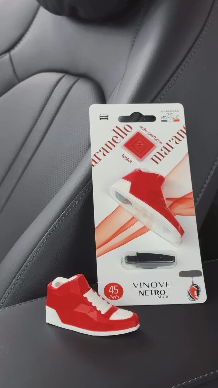 Geef je interieur een sportieve boost met de Vinove Netro Shoe Maranello Rood staat voor passie, snelheid en energie. De Vinove Netro Shoe Maranello is vormgegeven als een iconische, vurig rode sneaker en is de ultieme accessoire voor de sportieve rijder. Of je nu een raceliefhebber bent of gewoon je interieur wilt opfleuren met een krachtig design, deze luchtverfrisser brengt de sfeer van het circuit direct naar jouw auto.
